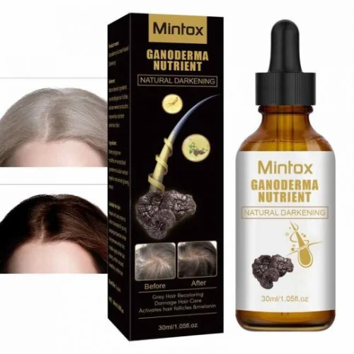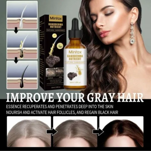 Anti-Greying Hair Serum with Ganoderma helps restore natural hair color, nourish the scalp, and promote healthier, darker hair.